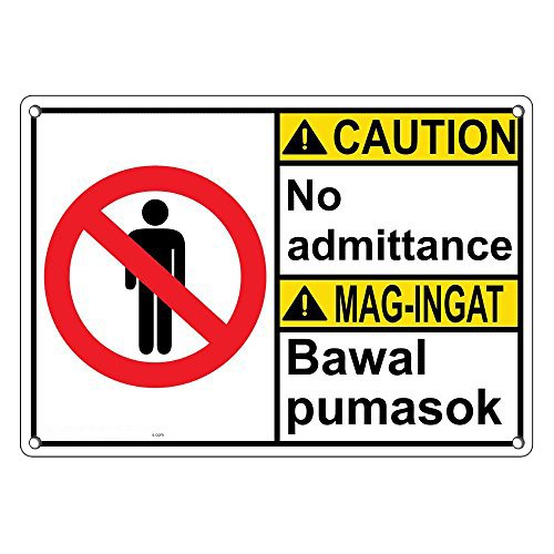 Weatherproof Plastic Ansi Caution No Admittance English Tagalog Sign With English Tagalog Text And Symbol Amazon Com Industrial Scientific